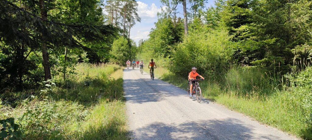 Traditionell startete die Radausfahrt an der Gemeindehalle in Kirchenkirnberg –dieses Mal mit internationaler Beteiligung. Die Fahrt führte bei sonnigem Wetter über den Dabbach hinunter nach Fichtenberg. Von hier aus ging es weiter auf dem idyllischen Rottal-Radweg über Oberrot nach Wielandsweiler. Entlang des Hülbenbaches zum Zwischenstopp dem herrlich gelegenen Starkholzbacher See bei Bibersfeld. Hier konnte man sich in der Gipsmühle für die Weiterfahrt stärken. Über einen kräftigen Anstieg ging es hoch nach Sittenhardt und weiter auf der Höhenstraße über Frankenberg, Stiershof, Erlenhof und runter nach Fichtenberg mit einem kurzen Stopp in der Krone. Für die Heimfahrt teilten sich die Teilnehmer und fuhren zum Teil über das Täle nach Kirchenkirnberg oder stellenweise auch direkt nach Hause.